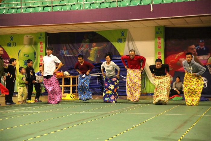 此次運動會共設置了袋鼠跳、兩人三足、纏繞接力和競速毛毛蟲等四種運動項目,“袋鼠跳”鍛煉了運動員的跳躍能力與協調能力;“兩人三足”考驗運動員的是需要團結一致,互相之間要配合默契,才能成功;“纏繞接力”讓大人和孩子們樂在一堆;“競速毛毛蟲”造型可愛,極具親和力,讓孩子們變身“運動小達人”……運動與激情,互助與友愛,競技與歡笑,在細雨中的體育中心組合成最美的風景。