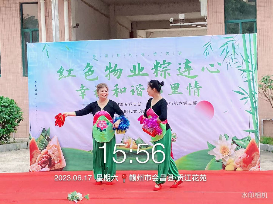 貢江花苑小區聯合貢江社區開展“紅色物業粽連心 幸福和諧鄰里情”迎端午主題活動?;顒訙蕚淞司实奈乃囇莩觥Ⅻh的二十大知識問答及包粽子活動,現場氛圍喜慶詳和,居民們臉上喜笑顏開。