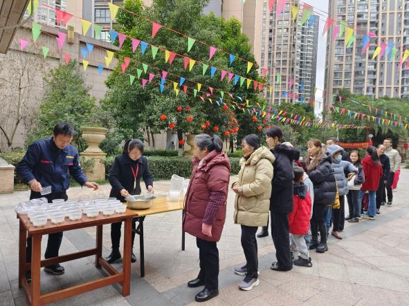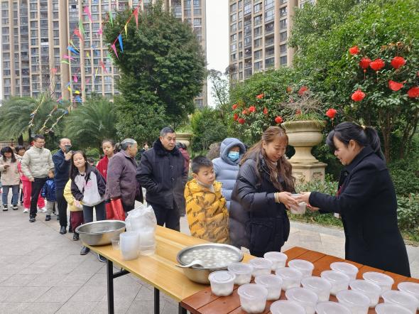 吃一碗元宵,盼一年團圓。元宵節吃湯圓,包含著思念親人、渴望團圓的寓意,也寄托對未來生活的美好愿望。盛合.公園壹號小區、帝景豪園小區、怡景嘉苑小區開展了送湯圓活動,物業工作人員一早準備了熱氣騰騰的湯圓,為業主家人們送上甜甜的祝福。將濃濃的祝福裹進餡兒里,包進湯圓里,送到手里,溫暖到心里。