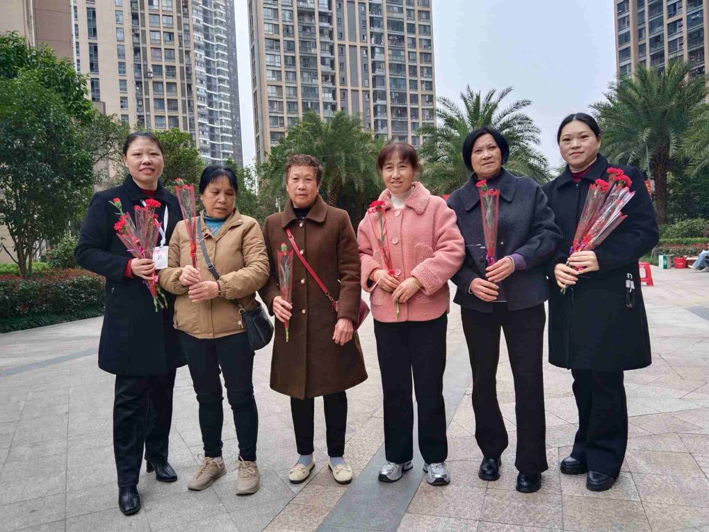 3月8日,物業(yè)工作人員為女性同胞送上嬌艷的康乃馨,一束束盛放的鮮花、一句句溫情的祝福,傳遞著對女性同胞的尊重與關(guān)愛,也寄托著對姐妹們健康美麗、幸福順?biāo)斓拿篮米T浮?br />