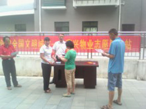 為全力配合贛州市創建全國文明城市活動,燕興物業在管轄小區內向廣大業主開展了宣傳活動,在宣傳欄內張貼了遵德守禮提示牌,在小區主大門前懸掛了宣傳文明條幅,成立了志愿服務隊,設立了“志愿服務站”。