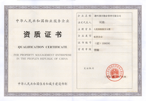 中華人民共和國(guó)物業(yè)服務(wù)企業(yè)資質(zhì)證書