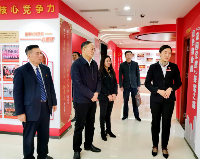 此次調研的重點是對燕興物業黨性教育中心進行考察指導。燕興黨性教育中心是燕興集團黨委開展黨員黨性教育和黨性鍛煉的基地,是基層黨組織開展“三會一課”、主題黨日等黨內組織生活的體驗式教學場所。張劍平書記參觀考察了黨性教育中心后,在座談會上說:燕興物業黨性教育中心布局嚴謹,工作扎實,用以小見大的典型案例,讓人看后入腦入心,充分體現了共產黨員的先鋒模范作用和黨組織的戰斗堡壘作用,希望繼續努力帶頭做好標桿和榜樣。