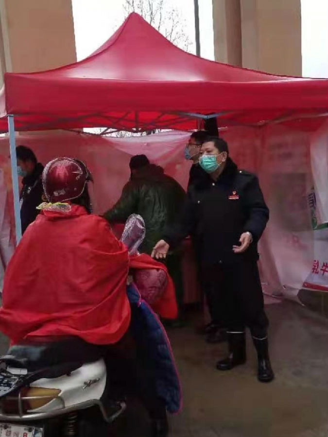 病毒傳播不分你我他,隱形的病毒源于近距離接觸。每一名物業人都有兒子、父母、愛人,都有一個家,有一份責任,一個口罩、一把體溫槍是物業僅有的防護裝備。在危險面前,部分物業人提出辭職請求,面對職責,肖忠良同志在給職工全面做通思想工作的同時,身體力行,以身作則,積極參與具體的防控工作當中,張貼溫馨提示、發放宣傳資料、使用84消毒水進行消毒、測量體溫、車輛進行登記建檔、對出入人員身份進行核查、建立疫情防控檔案、嚴密關注發熱病人 ,發現情況及時匯報。沖鋒在前,做出表率。在“難題戶”面前,他總是掛點跟蹤,把困難留給自己,把單子挑在肩上,受他的影響,請求辭職的員工表示愿意留下來同黨和政府、同事們并肩作戰,抗擊疫情。由于工作落實到位,責任到人,目前陽光和諧家園小區平安有序。
