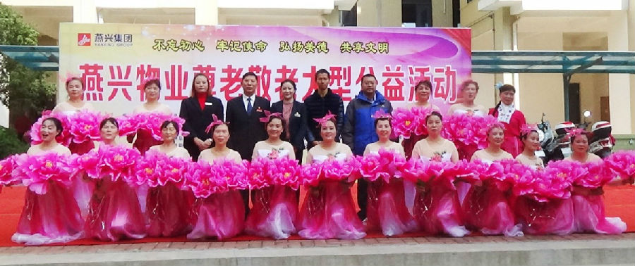 初冬時節,暖意融融。11月30日,江西燕興集團黨委聯合贛州市合眾公益協會、贛州市保障性住房建設運營有限公司 、章貢區水西鎮西域華城社區居委會主辦的“燕興物業尊老敬老大型公益活動”在贛州市章貢區水西鎮陽光·西域華城小區舉行。