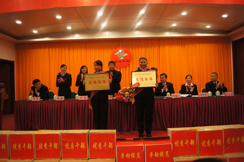 大會還宣布了榮獲2012年度先進集體和117名先進個人的名單,并在歡快的頒獎曲中為先進集體公務員小區、石城縣行政服務中心頒發了獎牌、獎金,為優秀員工佩戴了綬帶、紅花,頒發了榮譽證書、獎品,公司領導與獲獎人員愉快地合影。其間,大會還安排了抽獎活動,共有13人中獎,領取了獎品。最后,在悅耳動聽的《燕興之歌》聲中園滿結束了大會議程。