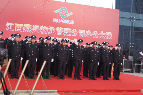 前來道喜的有物業(yè)企業(yè)的同行,有戰(zhàn)略合作伙伴,有各界的親朋好友等。在陣陣鑼鼓聲中喬遷儀式正式開始。首先映入眼簾的是燕興物業(yè)秩序維護員向嘉賓們展示的風彩,整齊的隊列、驕健的步伐、高昂的斗志,引來掌聲一片。隨后,燕興物業(yè)總經(jīng)理劉南斗致答謝辭,向來自四面八方的嘉賓、朋友們表示衷心地感謝。最后,中國物業(yè)協(xié)會秘書長柴勇、燕興物業(yè)董事長劉燕、吉安商會會長劉振德等登臺一同為喬遷儀式剪彩。