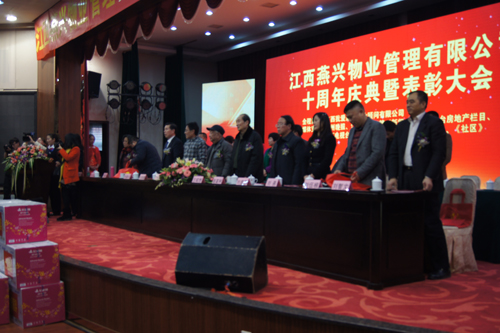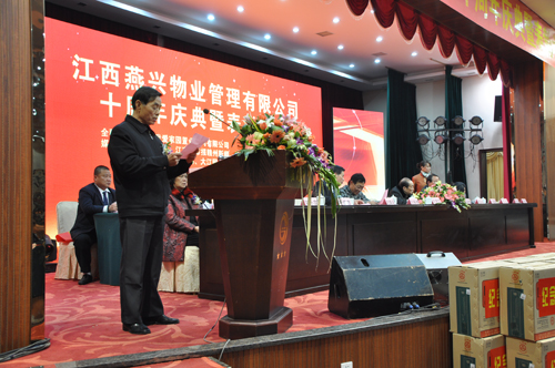 2013年12月26日下午2時,參加燕興物業成立十周年慶典表彰大會的領導、嘉賓和員工們已陸續來到贛州賓館一號會場,在嘹亮的國歌聲中大會由吉安商會會長劉振德宣布開始。