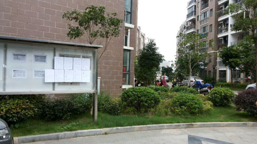 業(yè)主在觀看防災(zāi)減災(zāi)宣傳欄