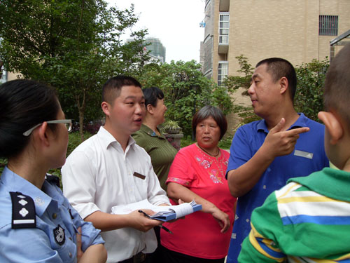 白鷺灣小區(qū)主任與社區(qū)民警一同向業(yè)主宣傳防災(zāi)減災(zāi)知識(shí)