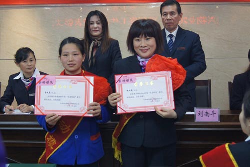 圖:為勞模頒發(fā)獎(jiǎng)狀