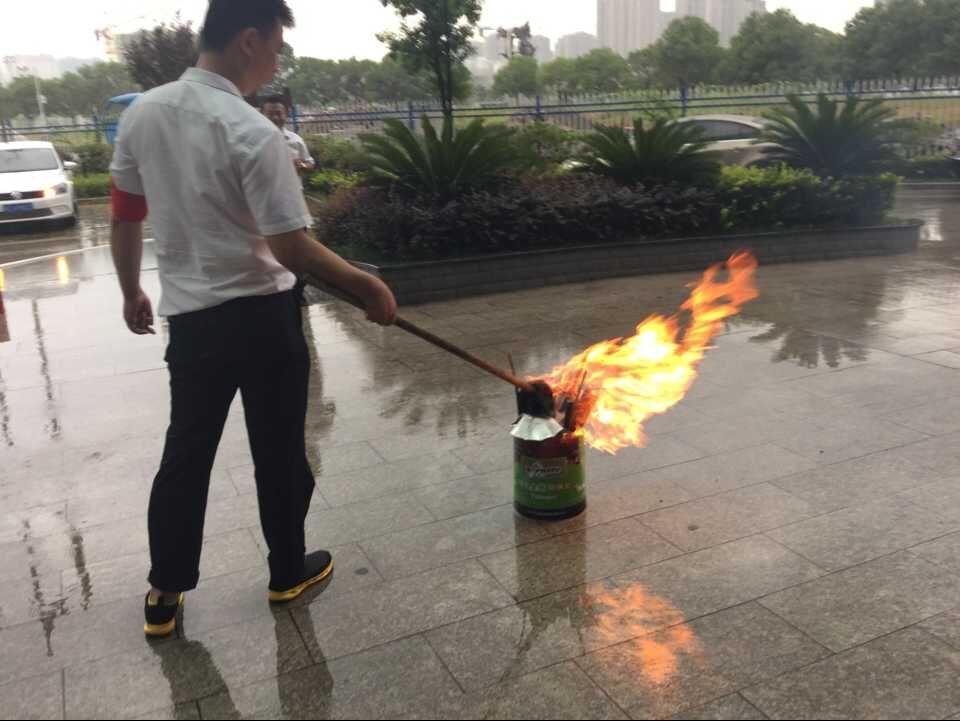 為鞏固演習成果,提升消防技能,在演習結束后,消防干警還組織物業公司人員進行了滅火器滅油盆火演練。