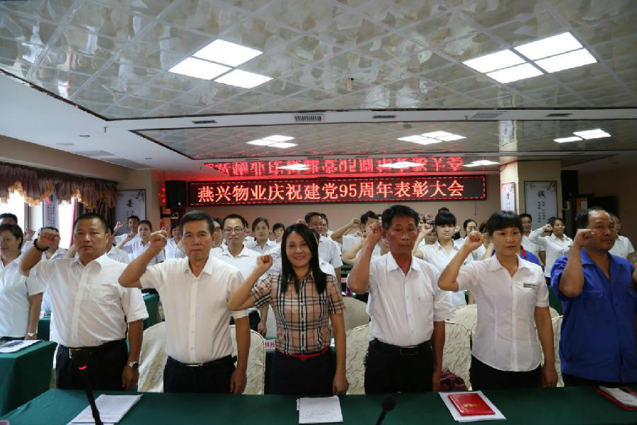 2016年7月1日,江西燕興物業慶祝中國共產黨成立九十五周年表彰大會在公司會議中心舉行。公司董事長劉燕、黨支部書記劉南斗、公司全體黨員及中層以上管理干部參加了會議。公司駐外縣(市)各分公司黨員和中層以上管理干部利用公司視頻會議系統參加了表彰大會。