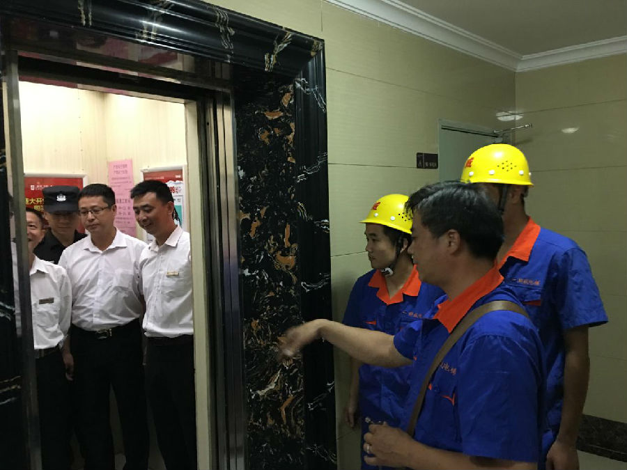 緊接著,贛州群威電梯設(shè)備有限公司維保部陳文平經(jīng)理就電梯的基本構(gòu)造、工作原理向參演人員進(jìn)行了簡要介紹,指出了不宜乘坐電梯的幾類人員及乘客乘坐電梯時容易發(fā)生的幾種錯誤行為,傳授了電梯出現(xiàn)故障時的自救和施救方法。