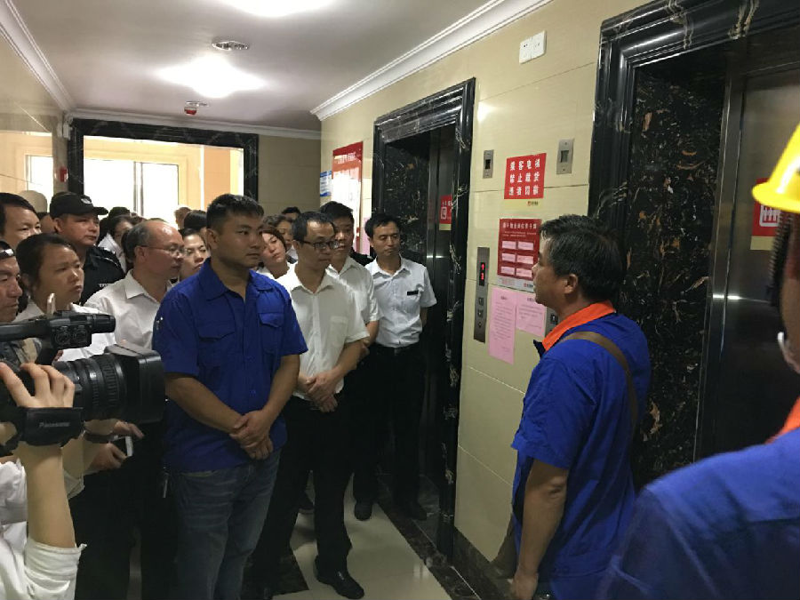 上午九點(diǎn),演練在章貢區(qū)市場和質(zhì)量監(jiān)督管理局特種設(shè)備科王科夫科長的講話中拉開序幕。王科夫強(qiáng)調(diào),今年6月是“安全生產(chǎn)月”,企業(yè)要圍繞2017年“安全生產(chǎn)月”主題“全面落實(shí)企業(yè)安全生產(chǎn)主體責(zé)任”開展活動,全面推動今年安全生產(chǎn)各項(xiàng)工作落實(shí)。王科夫指出,今年章貢區(qū)要創(chuàng)建“平安電梯”安全管理示范區(qū),要進(jìn)一步加強(qiáng)對電梯運(yùn)行的安全管理,進(jìn)一步普及安全知識、提高防范技能、增強(qiáng)安全意識、提升安全素質(zhì)。