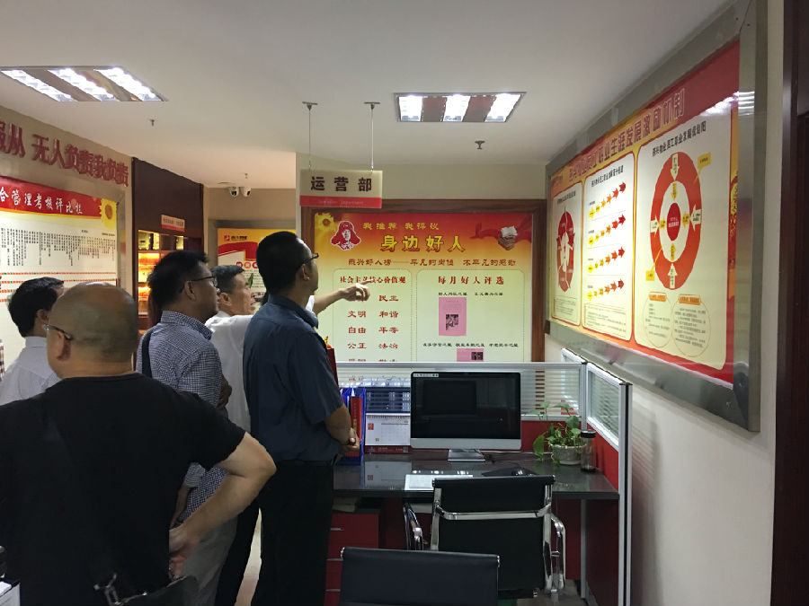 劉燕董事長對各位委員的到來表示熱烈的歡迎。隨后,雙方來到公司小會議室進行了親切的會談和交流。再觀看了燕興物業宣傳片后,劉南斗總經理就公司的基本情況 、企業文化建設及未來的發展規劃進行了簡要的介紹。最后各位委員在董事長和總經理的陪同下,參觀了公司的企業文化墻、呼叫中心和視頻會議室。