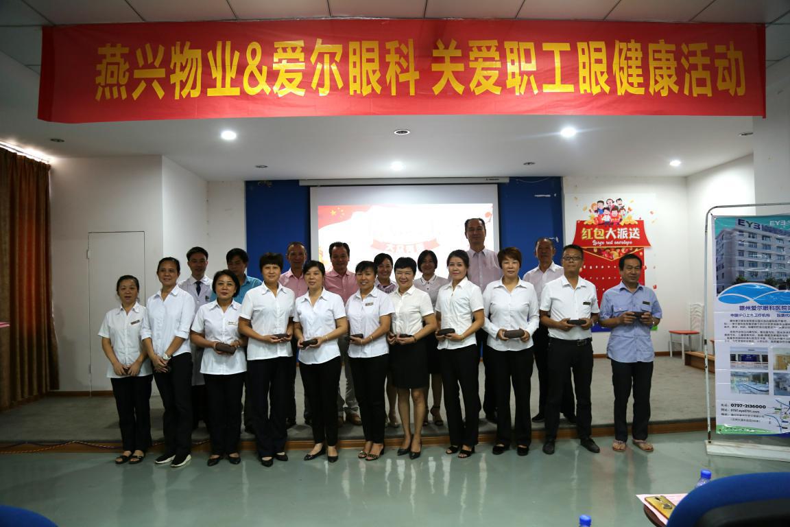 2018年8月21日上午,由江西燕興物業(yè)管理有限公司和贛州愛爾眼科醫(yī)院共同舉辦的“關(guān)愛職工眼健康”活動啟動儀式,在贛州愛爾眼科醫(yī)院會議室舉行。此次活動,受到雙方單位領(lǐng)導(dǎo)的重視和職工們的歡迎與支持,燕興物業(yè)有近40名職工參加了啟動儀式。