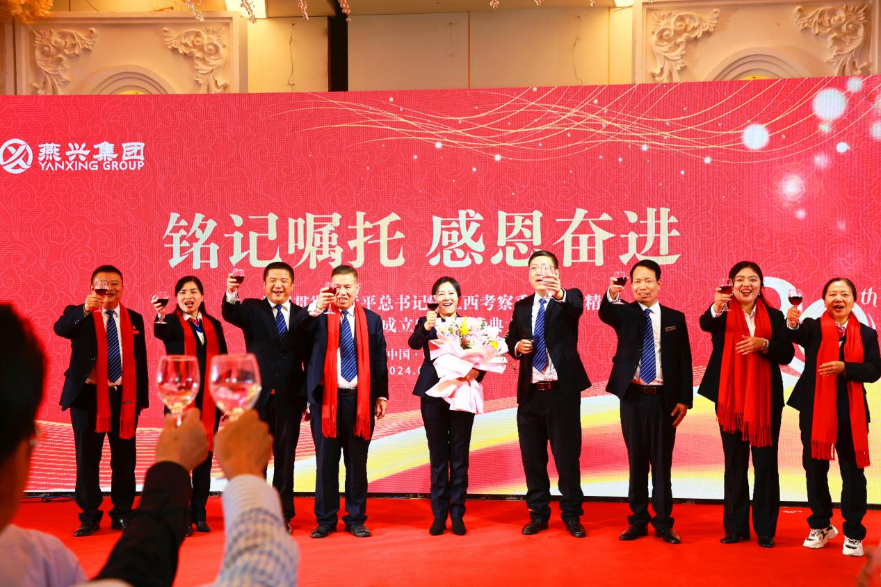 燕興集團黨委書記、董事長劉燕攜公司高層向到場的各位領導、嘉賓及員工代表們祝酒,慶祝燕興物業年成立二十周年,祝福燕興集團的明天會更好!