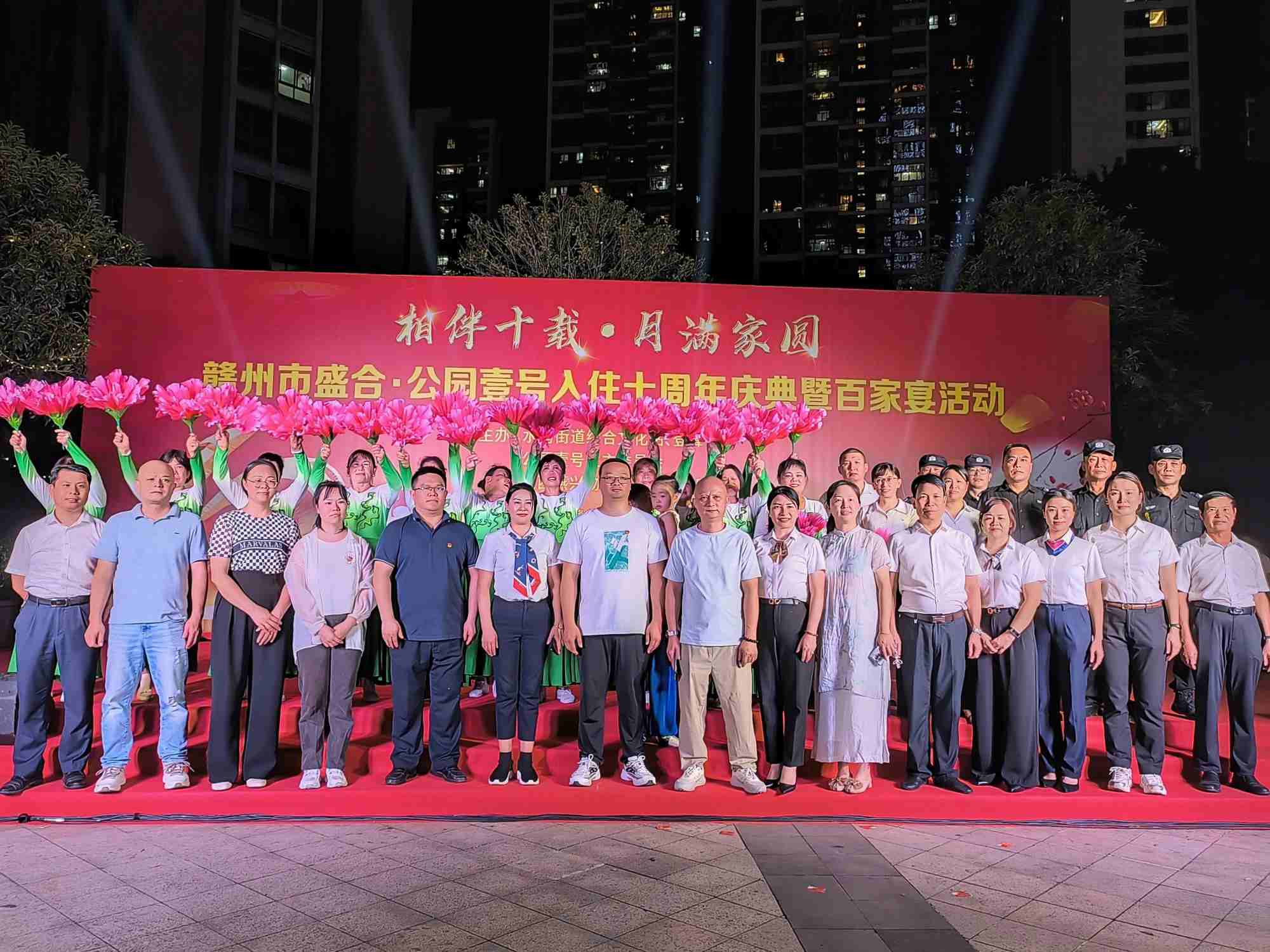 金秋送爽,丹桂飄香。9月27日晚,章貢區水南街道登峰社區盛合·公園壹號小區張燈結彩、歡聲笑語,一場以“相伴十載·月滿家圓”為主題的業主入住十周年慶典暨百家宴活動溫馨上演,燕興物業集團代表和數百名業主代表歡聚一堂,共敘十年鄰里深情。