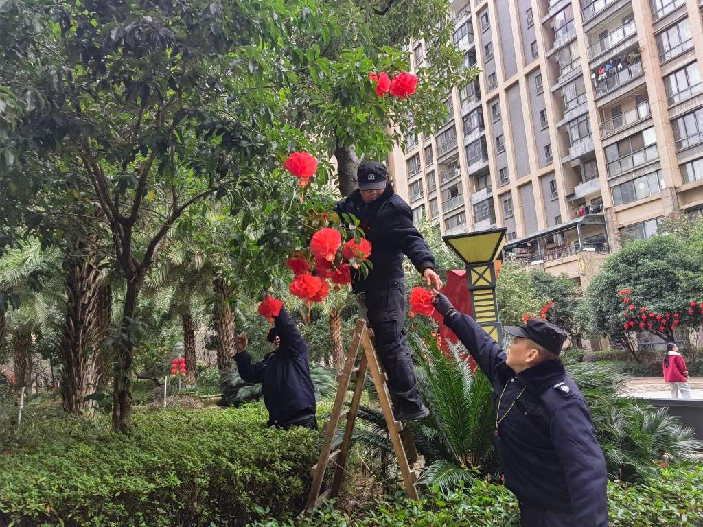 歲序更替,春歸有期,馬年新春的腳步悄然臨近。為讓小區處處洋溢濃厚年味,物業服務中心精心謀劃、匠心布置,全力打造有溫度、有氛圍的新春家園。工作人員穿梭在小區東、西大門、主次干道、休閑 廣場、單元門口等各個地方,將紅彤彤的燈籠、色彩鮮艷的彩旗依次懸掛,在綠化帶、休閑區點綴造型精致的馬年春節主題景觀小品,一筆一畫勾勒年味,一景一物傳遞溫情。