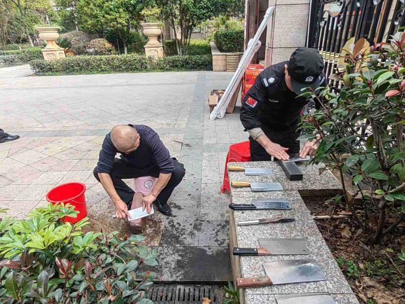在便民磨刀現場,工作人員認真細致地對待每一把送來的刀具。憑借豐富的經驗和嫻熟的技巧,將一把把鈍化的刀具打磨得鋒利如新。居民們紛紛表示物業提供的這項服務真是太貼心、太實用了,解決了我們日常生活中的一大煩惱。
