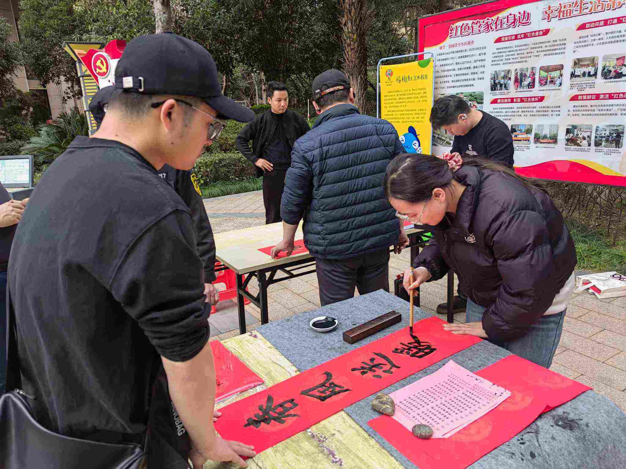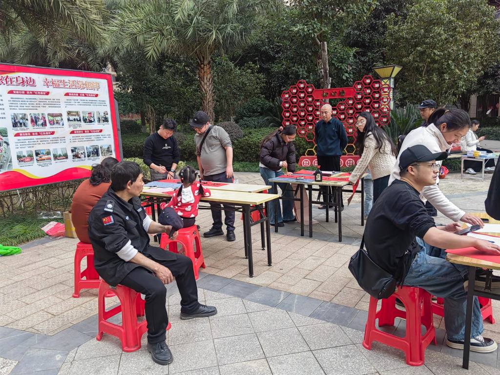 “翰墨飄香迎馬年,筆墨濃情送祝福”。為弘揚中華民族優秀傳統文化,營造喜慶祥和的馬年新春氛圍,2月5日,小區精心開展“迎新春、送春聯”主題活動。活動現場,志愿者們揮毫潑墨、筆走龍蛇,將對居民的美好祝福融入筆墨之間,一幅幅筆力遒勁、寓意吉祥的春聯鋪滿桌面,“馬躍春風添吉慶,家迎喜事納安康”“福滿家園添瑞氣,馬騰盛世啟新程”等一幅幅春聯,既承載著對馬年新春的美好期許,也傳遞著對居民生活的真摯祝福。