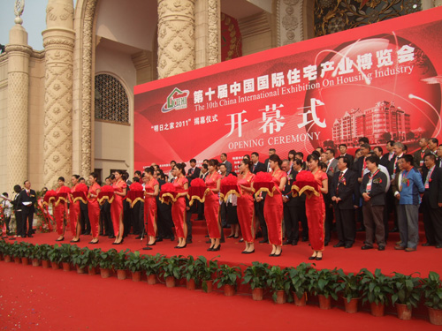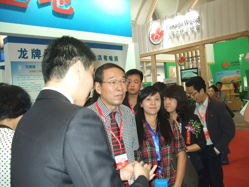 燕興物業公司劉燕董事長等一行人參加了在北京舉辦的第十屆中國國際住宅產業博覽會 公司董事長劉燕在住博會上與中國房產協會會長合影 2012-05-11