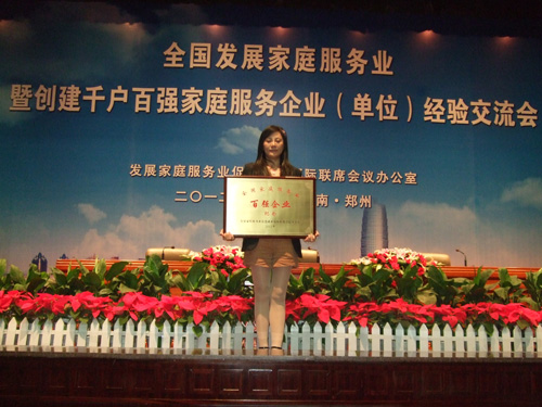 2012年全國發展家庭服務業暨創建千戶百強家庭服務業(單位)經驗交流會在河南鄭州召開,燕興物業董事長劉燕出席了會議,并獲得了由發展家庭服務業促進就業部際聯席會議辦公室頒發的“全國家庭服務業百強企業”獎牌... 2012-10-29