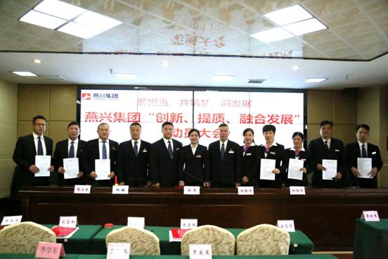 他強調,2019年是新中國成立七十周年,是燕興公司實施第四個五年規劃的開局之年。所以從這個意義上說,是公司轉型跨越年,求真務實年,是大干快上年,發展提速年,是全面振興年,也是燕興人大顯身手年。我們要正確分析市場形勢,冷靜面對格局變化,樹立“勇擔當、共筑夢、同發展”理念,按照公司第四個五年規劃確定的目標,按照今天簽訂的目標承諾書任務,扎實推進、努力奮斗,著力推進“創新、提質、融合發展”,實現第四個五年規劃開局之年的開門紅。