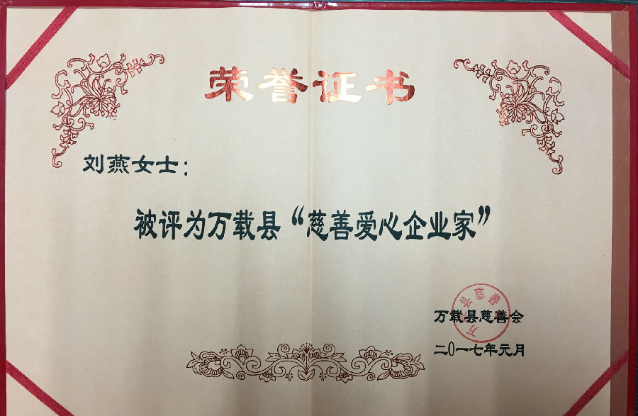 萬載縣慈善會頒發榮譽證書