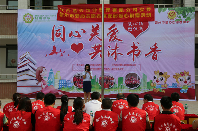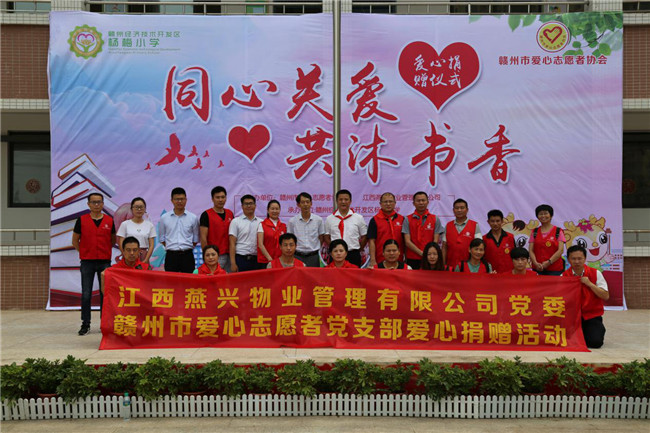 2018年6月11日上午,在贛州經(jīng)濟技術(shù)開發(fā)區(qū)楊梅小學(xué)校園內(nèi),由江西燕興物業(yè)管理有限公司黨委和贛州市愛心志愿者黨支部共同主辦的“同心關(guān)愛·共沐書香”愛心捐書儀式在這里舉行。