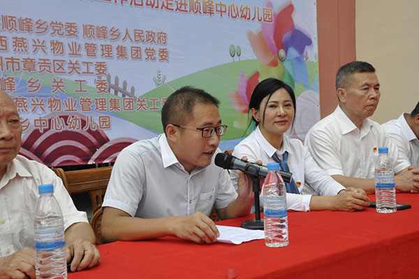 6月6日上午,“燕報梓桑思發(fā)展,興旺順峰育英才”企園共建“吉安市農(nóng)村一級一類幼兒園”捐贈活動暨揭牌儀式在萬安縣順峰中心幼兒園進(jìn)行。贛州市章貢區(qū)關(guān)工委副主任陳通炳、萬安縣順峰鄉(xiāng)鄉(xiāng)長邱斌、順峰鄉(xiāng)中心小學(xué)校長許尊昱、燕興集團(tuán)黨委書記、董事長、關(guān)工委主任劉燕、總經(jīng)理劉南斗、副董事長陽敏、副總經(jīng)理徐桂香、黨委副書記龔映華參加了捐贈儀式。
