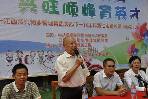 江西燕興物業(yè)管理集團(tuán)黨委書記、董事長、關(guān)工委主任劉燕的講話情真意切:親不親家鄉(xiāng)人,美不美故鄉(xiāng)水,我是順峰鄉(xiāng)人,美好的童年是在家鄉(xiāng)度過的。雖然我在贛州創(chuàng)業(yè),但有著揮之不去的家鄉(xiāng)情結(jié)。數(shù)年來,燕興集團(tuán)董事長劉燕一直熱衷公益,回報社會,為貧困山區(qū)捐款捐物、捐資助學(xué)、為解決下崗職工、農(nóng)民工的就業(yè)問題而不懈努力。